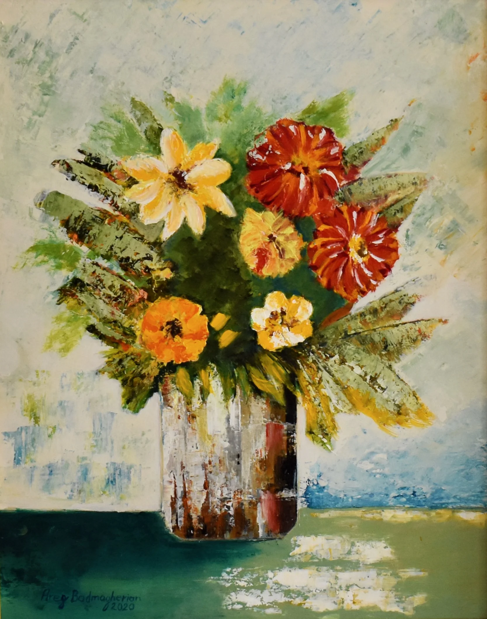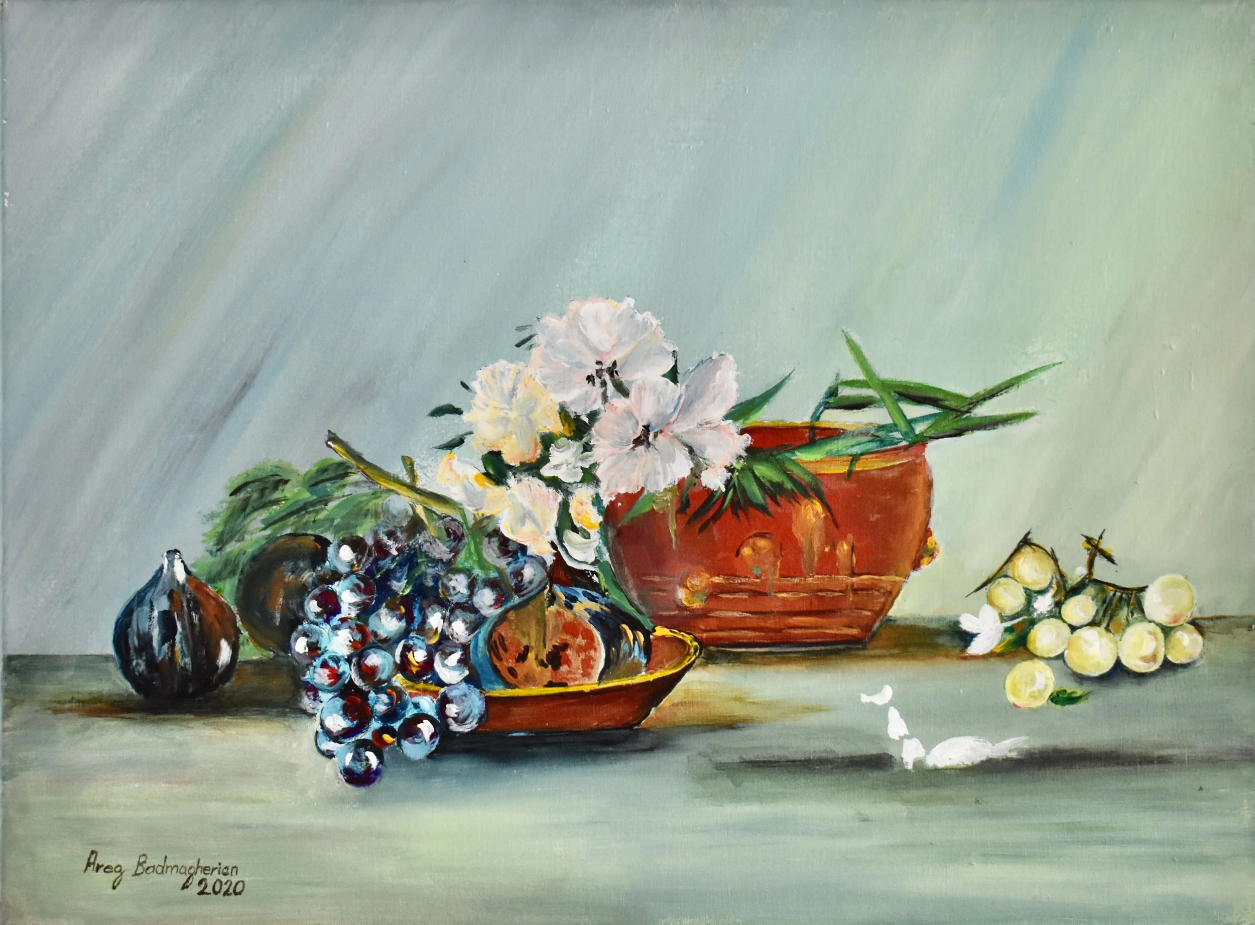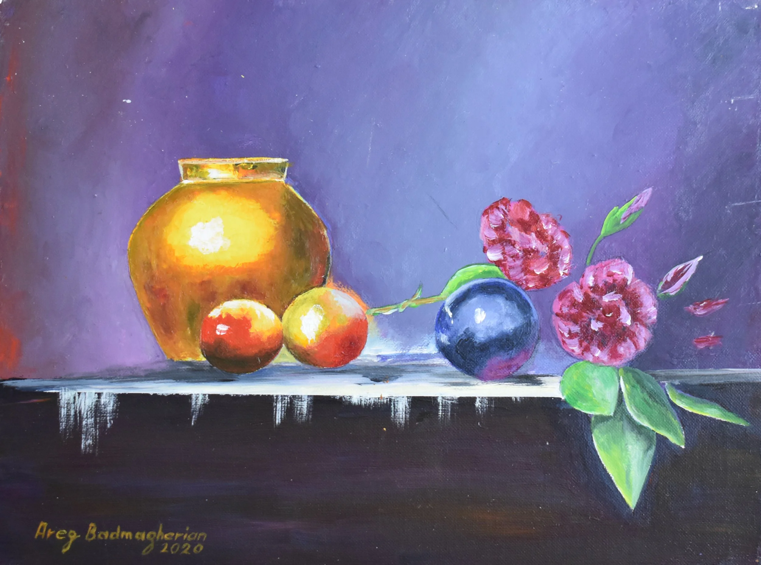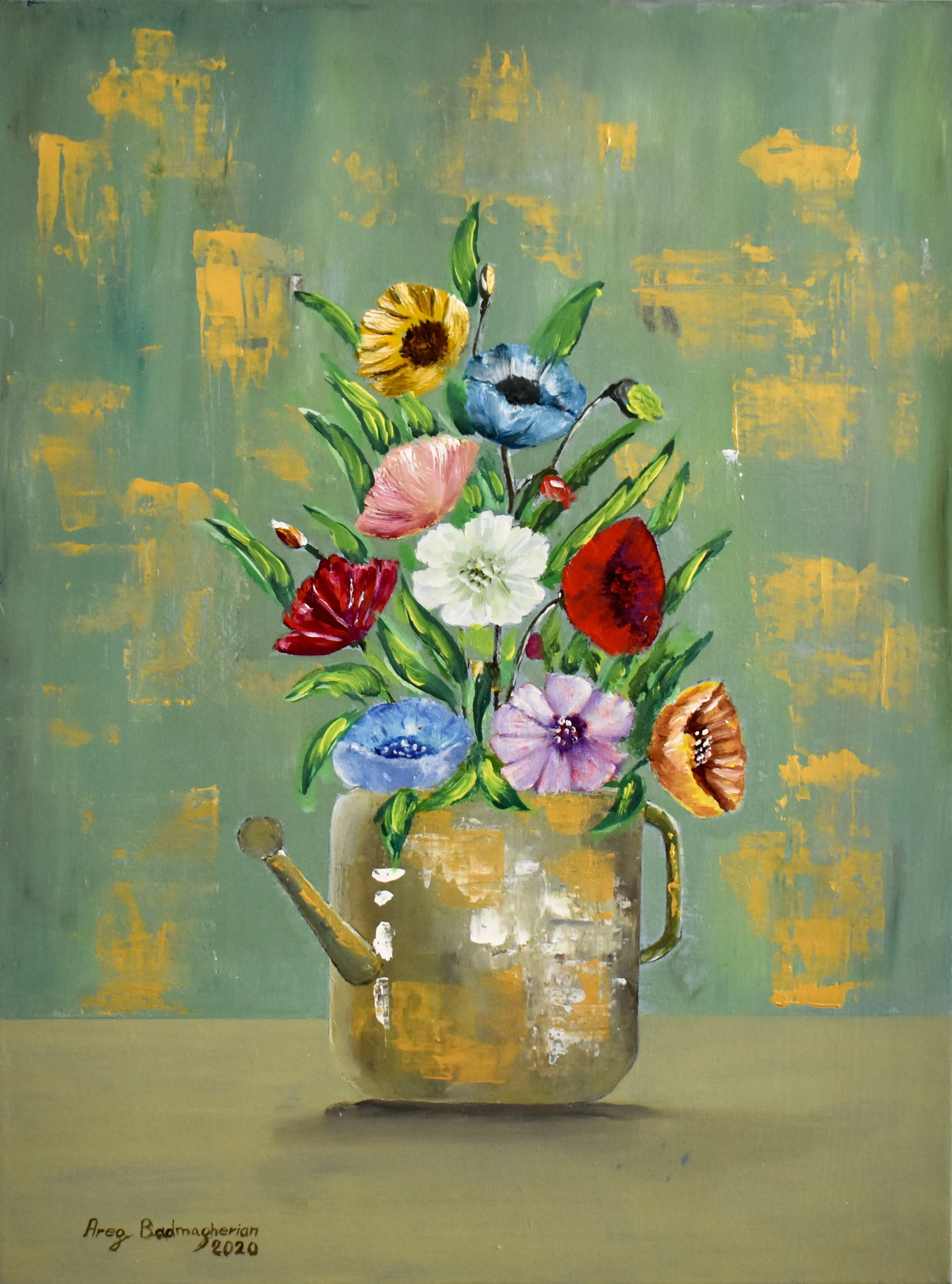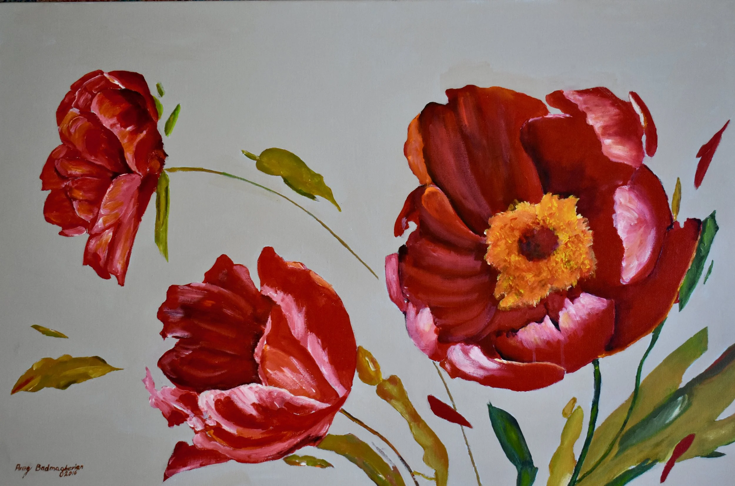 My still life collection The art goes on, the cause endures, the hope still lives and the dreams shall never die. Flowers with gold 18 x 24 in - $350 Pomegranate 12 x 12 in - $270 Flower Bouquet 16 x 20 in - $350 Abstract Flowers 14 x 18 in - $280 Spring 18 x 24 in - $350 Fruits 16 x 12 in $300 Pears 16 x 22 in - $300 Red Flowers 36 x 24 in - $700